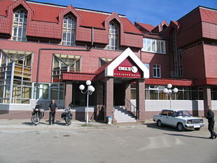 Gegen acht Uhr stehen wir vor dem, vom Lonely Planet empfohlenem und mit dessen Hilfe auch sofort gefundenem, Hotel. Leider können sie nur Kingsize-Doppel- aber keine Einzel-Betten anbie- ten. Die nächstgelegene Möglichkeit ist das Busi- ness-Hotel „Delta“. Für stolze 3400 Rubel (95,-EUR) und damit 900 RUB teurer als im vorherigen Hotel, bekommen wir aber auch ein luxuriöses Zimmer, wie man es auch in guten mitteleuropäischen Häusern findet.