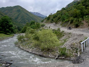 Als wir nach dem Frühstück im Hinterhof die Bikes beladen, begrüßt mich ein älterer Herr auf deutsch. Die weitere, sehr nette Unterhaltung führen wir aber dann doch auf englisch, da ihm diese Sprache geläufiger ist. Er sei Lehrer aus der Hauptstadt Bishkek, gibt er mir zu verstehen, und freut sich, uns hier in seinem Land will- kommen heißen zu dürfen. Und überhaupt, so lobt er uns, seien die Deu- tschen die vorbildlichsten und angenehmsten Touristen die er kenne. Gut, mit den Indivi- dualreisenden mag er ja recht haben, aber unsere „Pauschis“ in den einschlägig bekannten All-Inclusive-Ghettos würden sein Weltbild wahr- scheinlich gründlich zerstören...