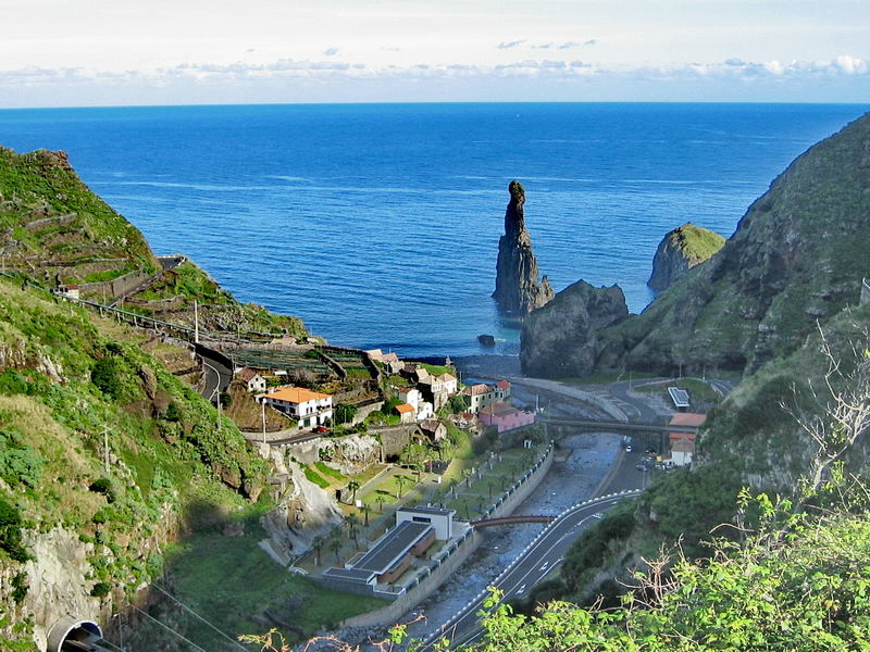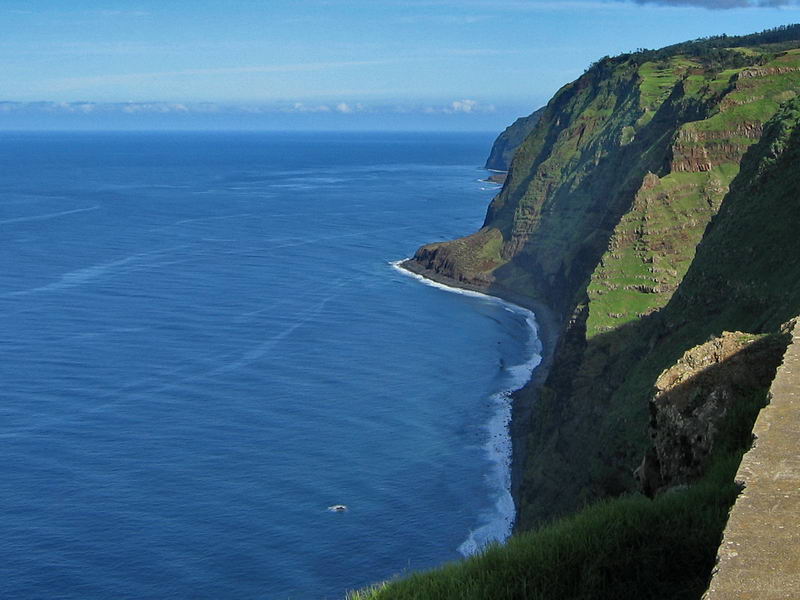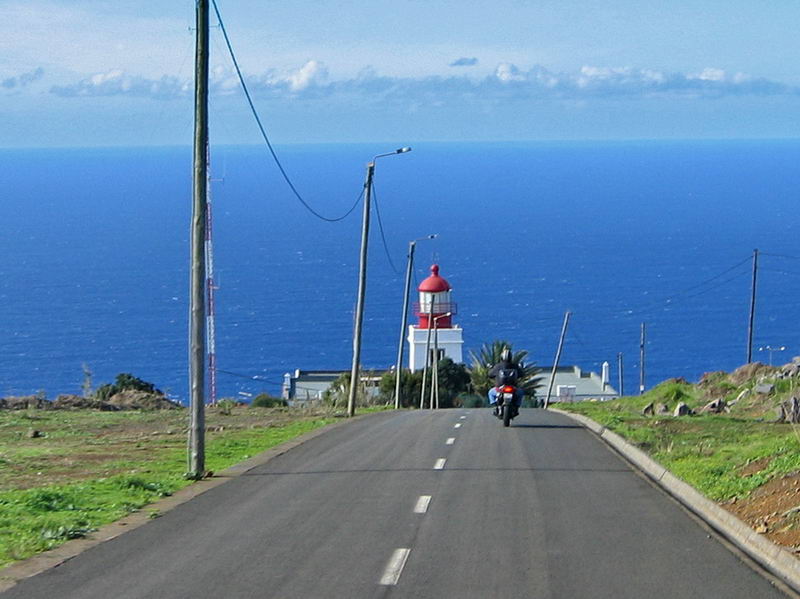 Nächster Stopp ist Quebrada Nova, respektive dessen Bergstation. Der Ort selbst liegt etwa 450 Meter tiefer auf einer kleinen Landfläche vor dem fast senkrechten Abhang. Vor dem Bau der Seilbahn war das kleine Dörfchen nur über den Seeweg erreichbar. Kurz darauf stehen wir am „Ende Madeiras“, Punta do Pargo, die westliche Spitze des Eilands. Ein auf den 300 Meter hohen Klippen stehender, einsamer Leuchtturm sorgt dafür, dass die Insel nachts nicht von Schiffen über den Haufen gefahren wird. Da die Straße hier endet gibt es auch keine Wegweiser mehr, wie z.B. New York 5000km oder Fortaleza (Brasilien) 4600km.