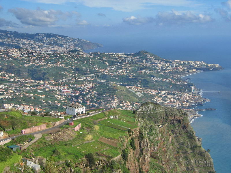 Wieder zurück aus der Sackgasse setzen wir entlang grün bewaldeter Berghänge unsere Inselrundfahrt fort. Vorbei an den Orten Paul do Mar und Jadim do Mar, die ebenfalls auf, den Bergen vorgelagerten Landplateaus liegen, fahren wir bis zur höchsten Klippe der Insel. Cabo Girau liegt 580 Meter über dem Meeresspiegel und ist damit in Europa das vierthöchste seiner Gattung. Sehr beeindruckend, der bis jetzt noch kostenlose Blick nach unten. Das dürfte sich demnächst mit Sicherheit ändern, wenn der nach amerikanischem Vorbild geplante, gläserne „Sky-Walk“ dort errichtet wird.